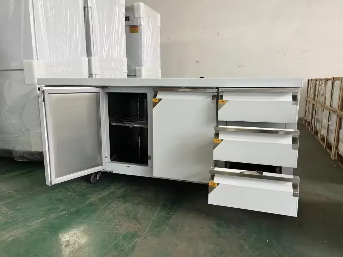 Cozinha comercial de quatro gavetas Freezer Chef Base Counter Sandwich Pizza Refrigerador Refrigerador Air Cooling Frost-Free Low Drawer Freezer