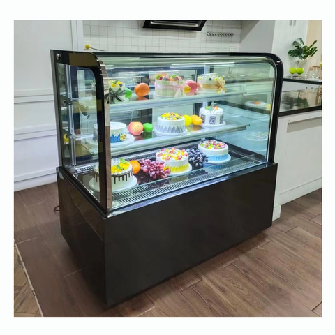 Süpermarket LED ışık şeffaf cam paneller ve hava soğutma tatlı vitrin buzdolabı ile buzdolabında kek dolabı